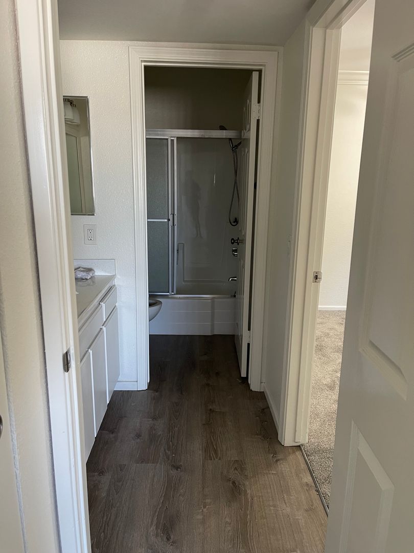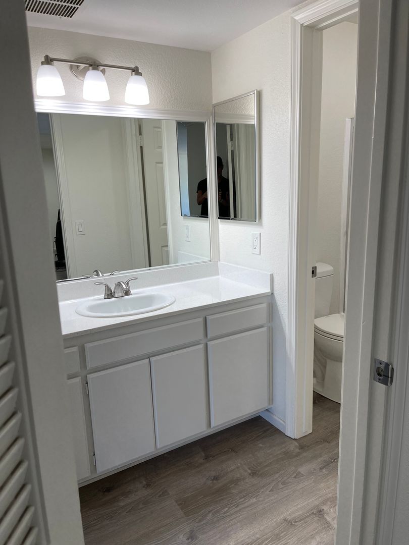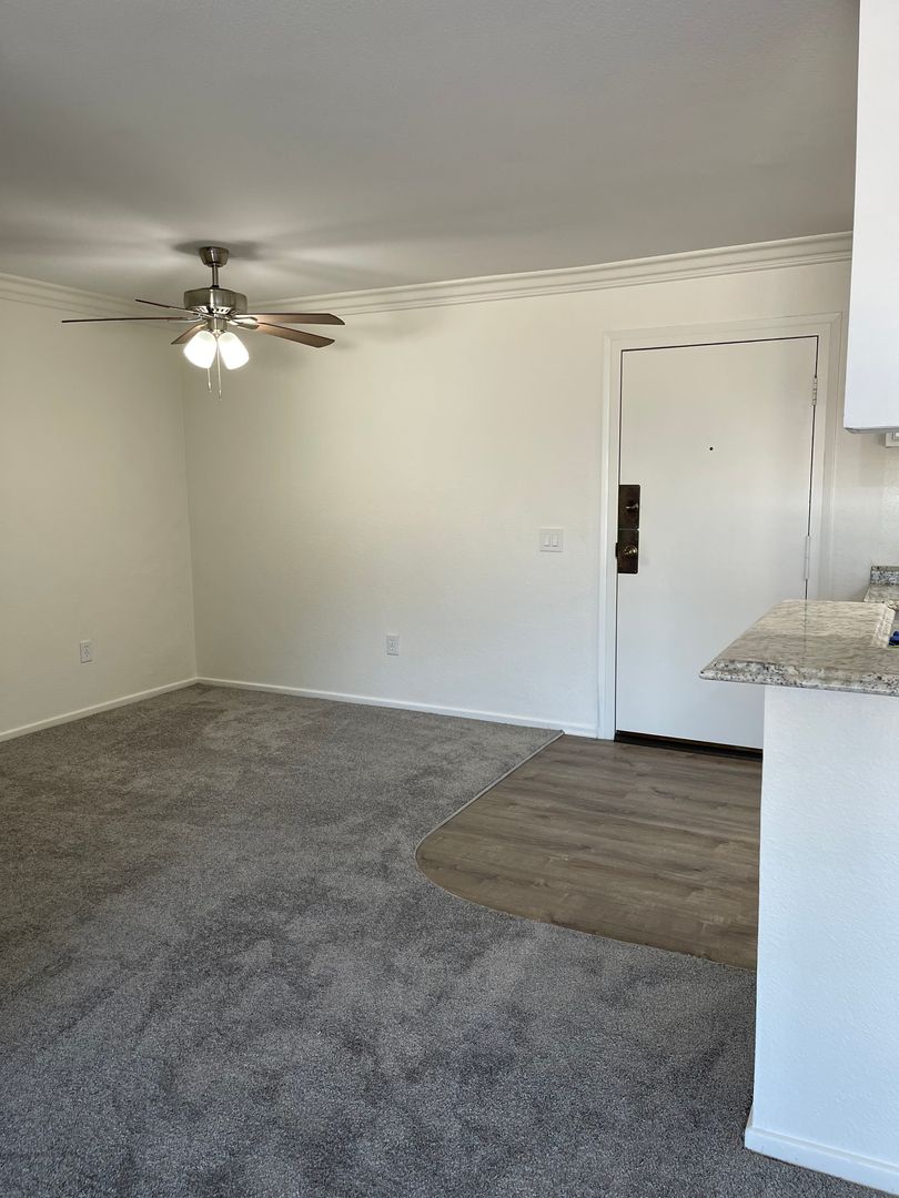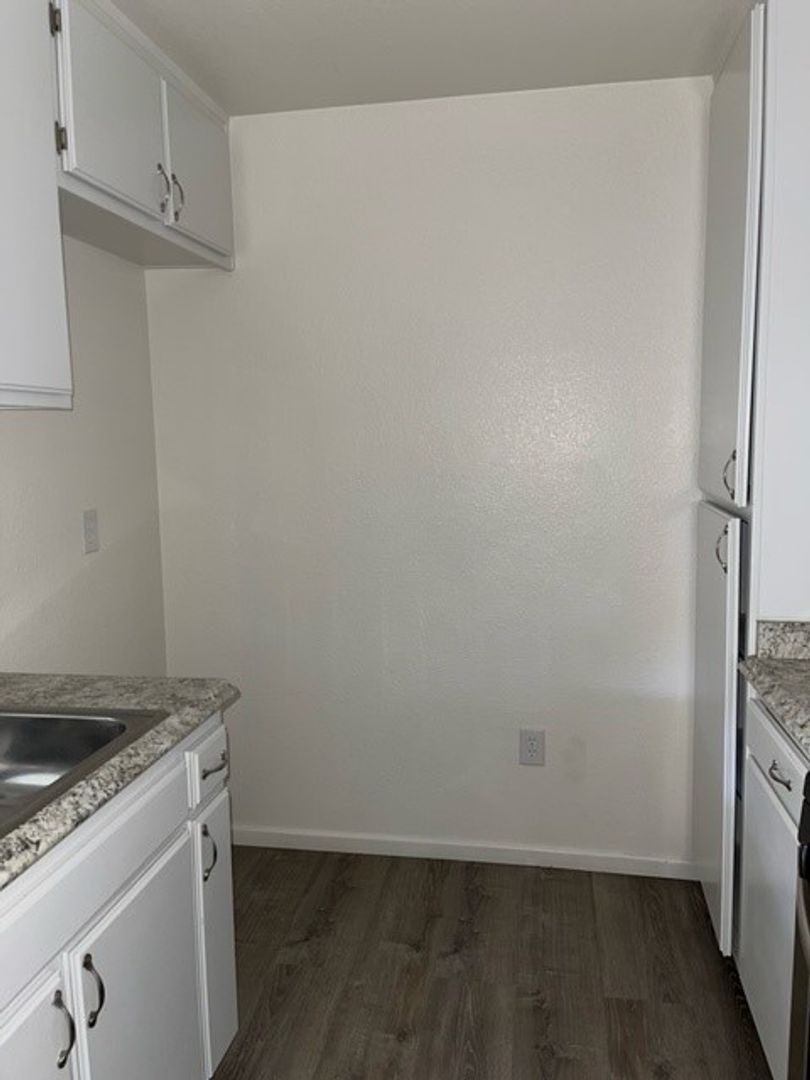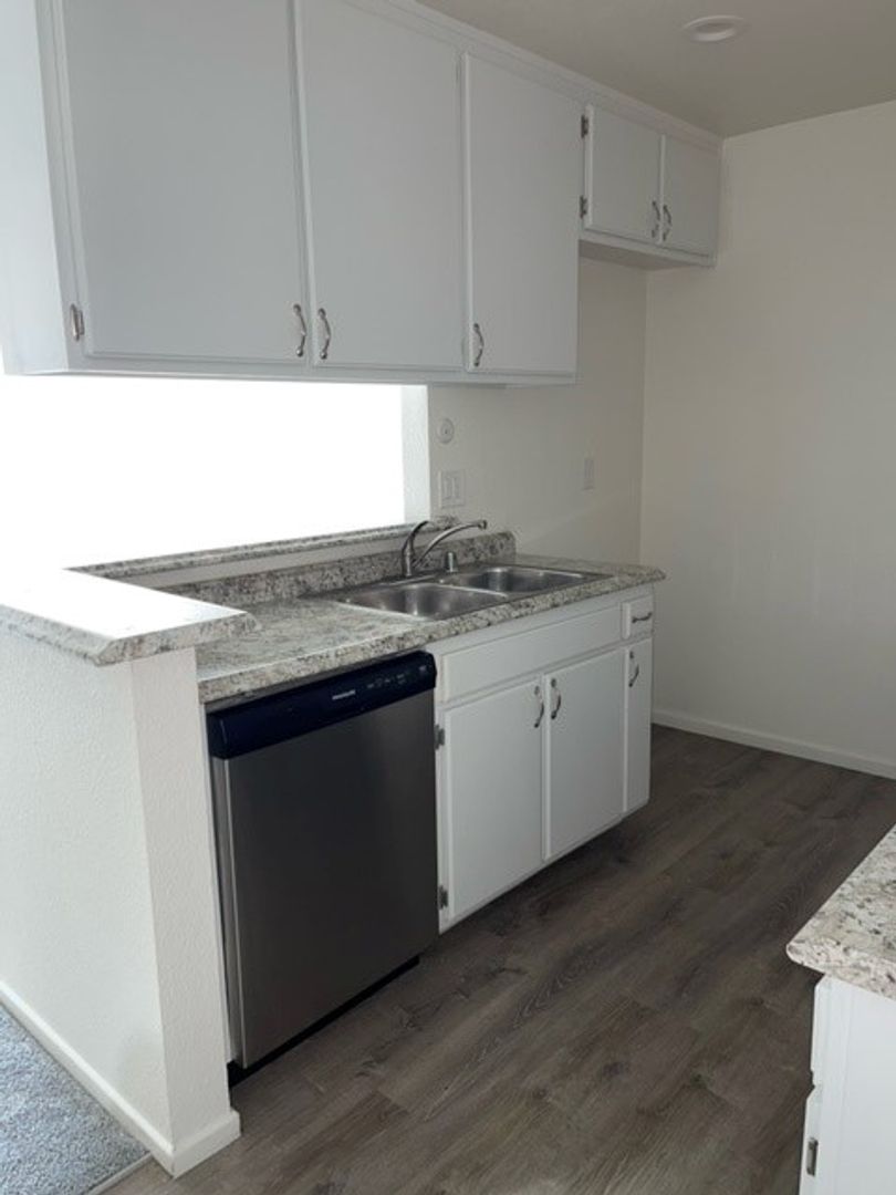 1 Bedroom 1 Bath with Stainless steel stove and dishwasher, Led lighting, smooth ceilings, Spacious Bedroom with large wall to wall closet, carpet in bedroom, laminate wood floors in kitched and bathroom. Assigned parking. On-site coin less laundry room, pool and spa. Great location near the 405 fwy.