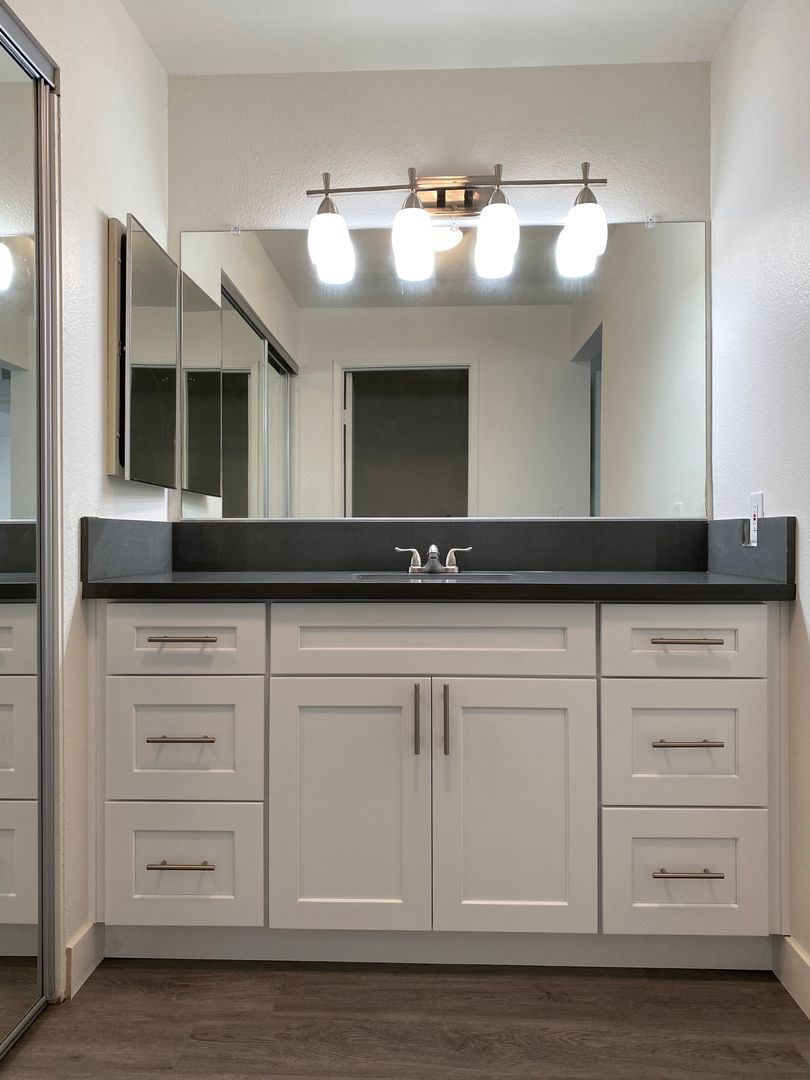 1,000 sq. ft. 2bdrm/2bth apt. In a very good location, cross street to Azusa Pacific University and walking distance to Citrus Collage. Newly remodeled with granite counter tops in the kitchen and both bathrooms. New stove and dishwasher. Large master bedroom with mirrored closet doors; guest bedroom also has mirrored closet doors. One available now!